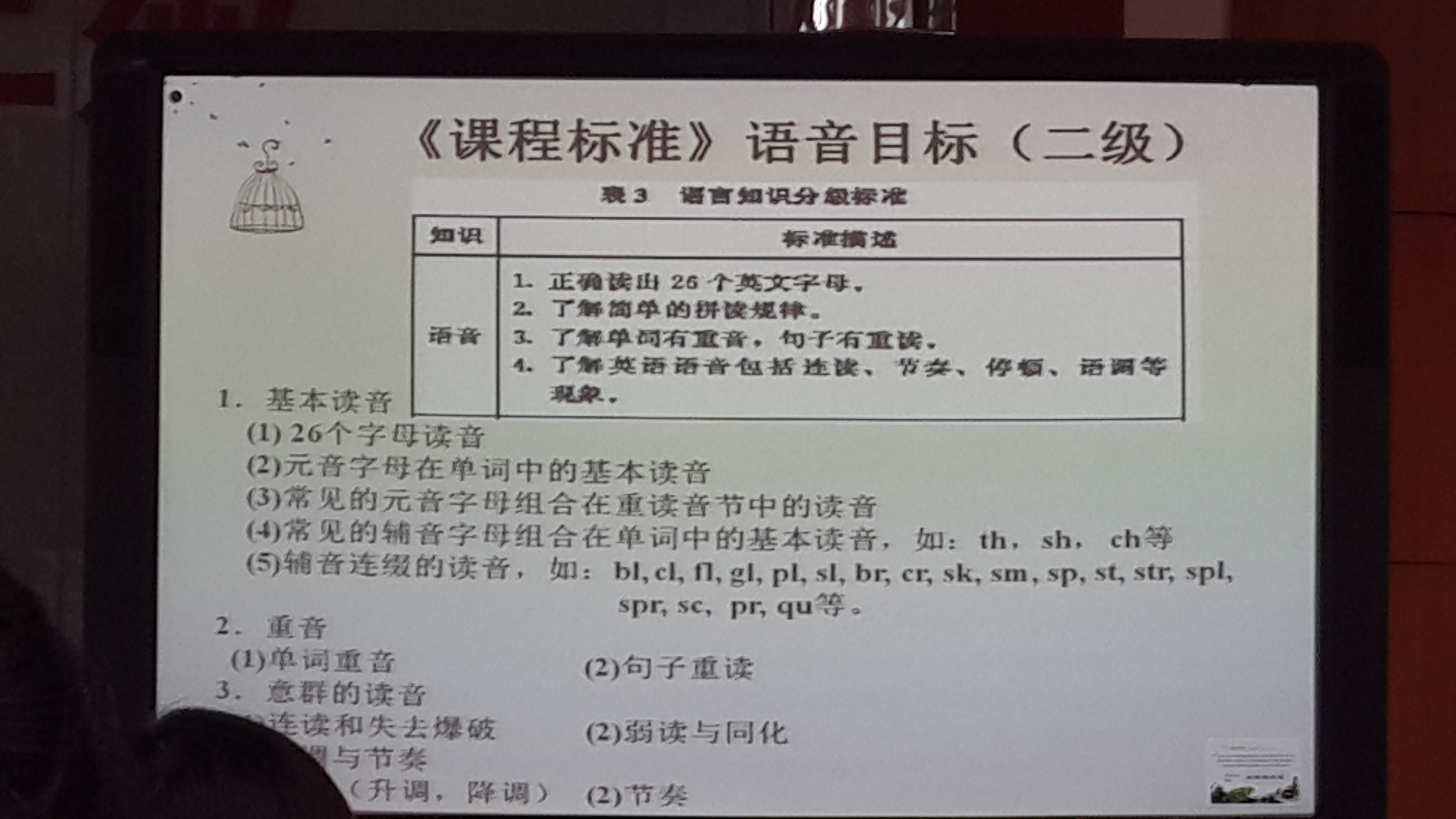 褚教授在讲座中谈到,培养学生的语音能力首先需要唤醒教师的语音教学意识。从新颁布的《义务教育英语课程标准》中对语音教学的阐述,不难看出国家教育部门及课表组研制组中英语教育专家对语音教学的重视。她列举了语音教学中主要存在的问题,提出了语音技能二级标准的主要细则,并详细谈到语音发音的一些规律和变化,整个讲座持续了三个小时,而我们每个人都听得聚精会神,一点也没觉察到时间的流逝,走出听课的教室,真心觉得受益匪浅,满载而归。