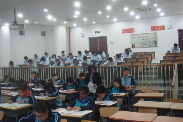 下午四点,塞万提斯学院DELE考试负责人Paco与教学主任Olga先后参观了精心布置的模拟考场425教室和501备考室。初二(6)班的同学们在考官和老师的安排下,在425教室按序就坐,模拟考试于16:40正式开始,同学们使用统一分发的文具答题。之后,初二和初三的同学们还在录课室参加了听力和作文考试。最后,在413教室,有九名同学参加由塞院考官和外教共同组织的DELE口语模拟考试。晚8点,本次DELE模拟考试顺利结束。