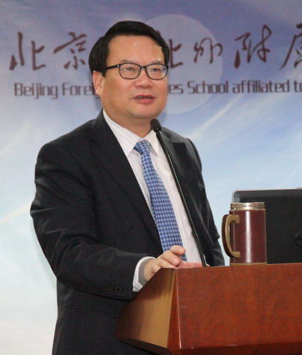 林卫民校长作了题为“顺应教育的天赋行事,实现让家长感动的教育”的讲话。林校长指出,要想改进学校,就内部来说,就必须让教育的内涵超越实用的考试类课程的限制;培育一批极优秀的教师,形成一股振兴的校风,使学校顺应教育的天赋行事,使办好教育的意志变得明朗。改变学校的整个过程需要时间,我们需要一种追求卓越的精神,这种追求卓越的精神可以表达为:不只是满足于让家长满意,而是通过创造对学生终身有益的教育价值,让家长永远感动。林校长从“爱是教育的原动力,正确地做教育比认真地做教育更重要,有效的教学是经验和思考的结合,我们的责任在于职业伦理责任而不只是事务责任”四个方面阐述了我校的教育和管理理念。林校长对全体教职工提出了殷切的希望,希望全体教职工共同努力,使北外附校教育成为感动家长、感动学生、感动社会的教育。