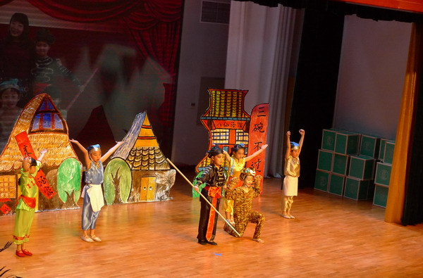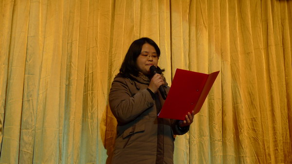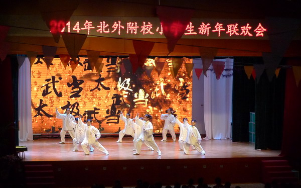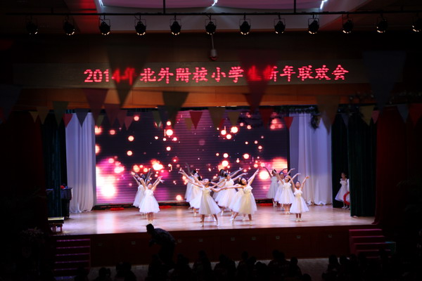 新年联欢会在激昂的鼓号声中开幕。在主持人的一一介绍后,一系列精彩的节目登上这个大舞台:美丽的“春天的芭蕾”、民族独舞“小马驹”、京剧“小武松打虎”、 诗朗诵”满江红”、 话剧“梦游”、……每个节目都博得了热烈的掌声和同学们的好评。各式各样的歌舞表演精彩纷呈,如:“You Raise Me Up”、“Memory”和“我相信”等歌曲让人赞不绝口。最后,在充满青春活力的音乐中,新年联欢会圆满落下帷幕。