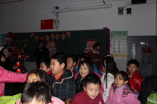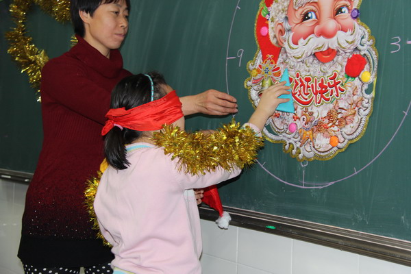 活动开始了,当孩子看到自己的爸爸妈妈手捧蜡烛等待自己时激动不已,这时,一个大大的拥抱是对爸爸妈妈最大的感谢!活动中,Simon老师结合目前孩子们的学习内容,与家长共同设置了“贴鼻子”和“扮演时钟”游戏,在游戏中锻炼孩子们相互帮助,共同完成任务的能力。班主任包老师与学生们共唱英文歌曲,数学崔老师扮演了圣诞老人为学生们发放礼物。郭奇峰老师为我们客串主持,以其幽默风趣的语言为本次活动增光添彩。
