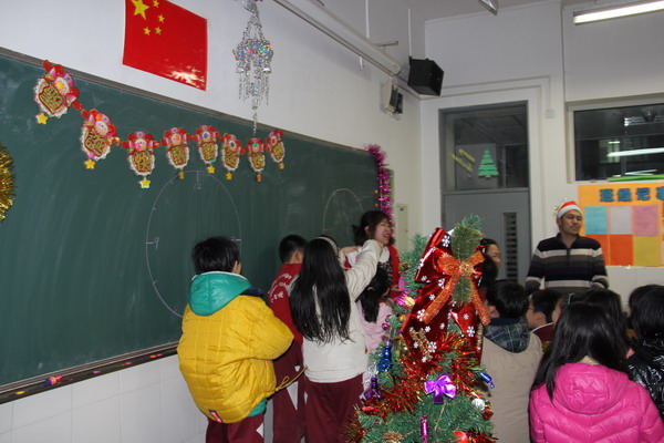 叮叮当,叮叮当……又是一个圣诞节如期而至,今年的圣诞节活动对于四年级(7)班的学生是一个难忘的节日。12月24日,Simon老师和四年级(7)班的家长们为孩子们举办了“欢乐圣诞,你我共享”主题PARTY。班主任包老师,围棋教师郭奇峰老师,数学教师崔老师参加了此次活动。
