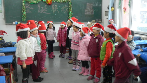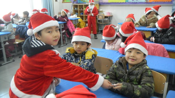 2013年12月25日下午,一年级(9)班班级圣诞联欢活动也正式拉开了帷幕,孩子们都跃跃欲试,等待着上台表演才艺。班级里有的孩子唱抒情歌;有的表演舞蹈;有的表演跆拳道;有的讲故事等等。尤其是小帅哥王春智给我们带来的舞蹈《江南style》,他的表现感染了所有人,大家都被他带动着跳了起来,还有小主持人应昊洋给我们又唱又跳,真是多才多艺啊!正在孩子们兴高采烈的观赏节目时,两位扮演圣诞老人的同学也换好了服装走进教室给大家发起了礼物,此时孩子们的情绪高涨,激动的欢呼。收到圣诞老人派发的小礼物,孩子们高兴不已。