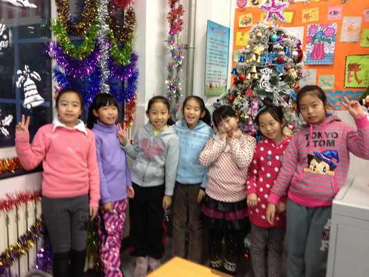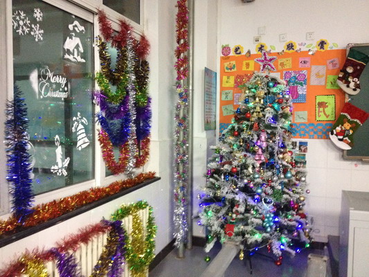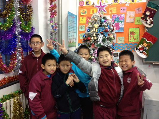 四年级组的老师和家长们为孩子们精心布置了五彩缤纷的圣诞树,精彩的圣诞晚会也在如火如荼的准备中:班主任、家委会成员共同商讨活动细节;英语老师和孩子们筹划如何让外教老师在附校过一个美好的圣诞节;孩子们三五成群地排练着自己的节目,每个人都是那么认真,每个人的脸上都写满了幸福与快乐。