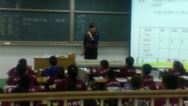 接着本组年轻老师赵阳上了一节《商不变的规律》,使老师们感觉眼前一亮:在赵老师巧妙的设计下,学生们通过速度这个模型主动探究,发现规律、验证规律,在整节课中,既收获了知识,又培养了探究能力。赵老师语言精练、反应迅速,受到听课老师们的一致好评。