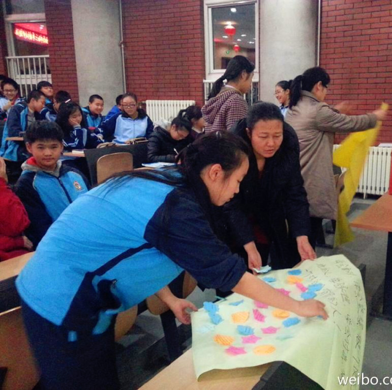 同学们立即行动,纷纷将自己当场感受到的青春的激情活力、对青春憧憬的梦想,以及为了督促自己珍惜青春、立即行动、实现梦想的话语写在手中的彩色卡片上,作为一份礼物送给刚刚迈入青春期的自己。现场的同学们还十分踊跃的带着青春的激情和大家分享自己的青春感言和寄语,并将全班同学的青春寄语贴到了班级的青春梦想版上,由两名同学高高举起,全班同学共同高喊班级的青春口号,初二年级八个班级高昂的青春口号声在阶梯教室里此起彼伏,现场气氛热烈非常,处处洋溢着青春的活力。