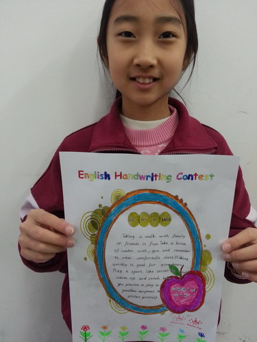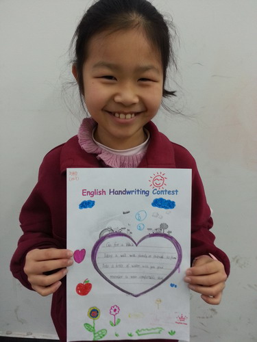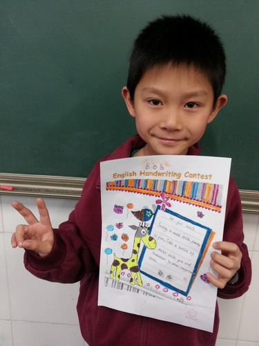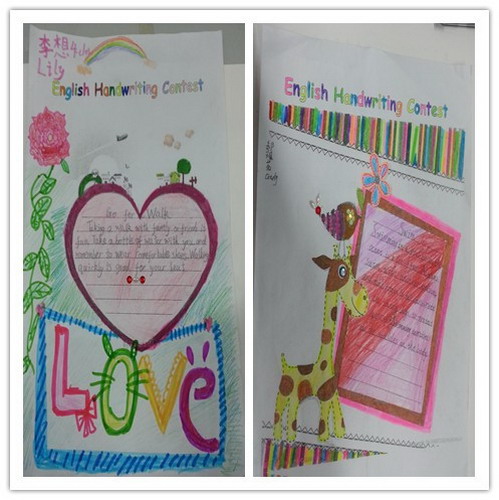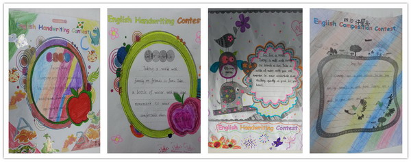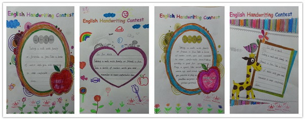四年级的同学们按照比赛规则,在一节课时间内抄写指定篇目、内容,除了书写格式规范、单词书写无误,无漏写现象、字迹工整美观,书写流畅的要求外,四年级还要求图文并茂,设计精美,充分展示了我校学生的书写和设计能力。