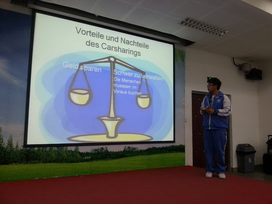 在授予仪式之后,我校高二年级刘士琦同学为大家展示了DSD C1口语模拟考试,初三及高中全体德语同学均参加了观摩。