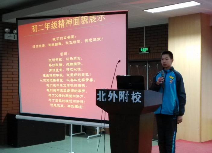会议分为两个部分:对第一学期上半部分表现突出和学习优异的同学进行表彰和激动人心的颁奖仪式。在这上半学期的时间里,各班都以集体为单位获得了不同的荣誉称号,总结并表扬了每个班级的表现情况。接下来便是对这次期中考试的前15名年级特优生的表彰。对年级在期中学习取得优异成绩的同学表彰后,接着对各个班级前五名学习标兵进行表扬。成长伴随着进步,同学们的努力和付出与取得的结果是成正比的,初二年级对进步50以及50名以上的同学表示鼓励,并为他们取得满意的成绩感到骄傲与自豪,希望他们再接再厉,在下次取得更好的成绩!