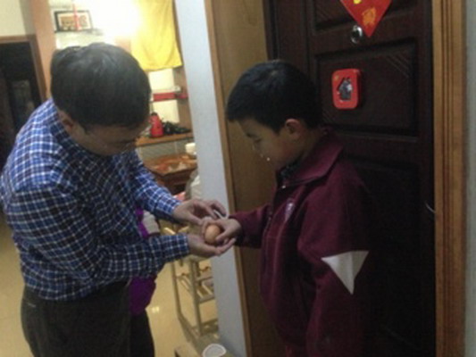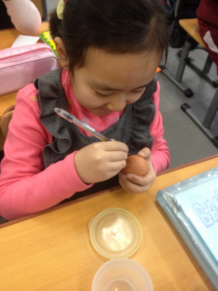 看,孩子们小心翼翼地用各种方法保护鸡蛋,那一丝不苟的神情多么可爱啊!在课上,孩子们把要对爸爸妈妈说的感恩的话写在鸡蛋上。晚上,孩子们将装饰一新的鸡蛋送还给爸爸妈妈,以感谢父母的养育之恩。