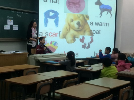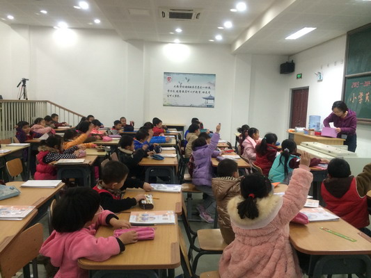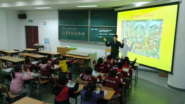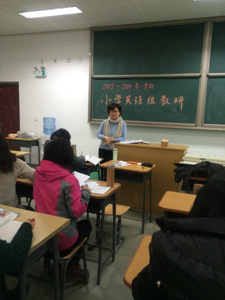 本次英语教研活动由英语教研组长主持,分别由三年级组刘振敏老师、二年级组曲阳老师以及一年级组化越老师向我们展示了三节各具特色的英语课。刘振敏老师的课堂清晰实在、系统扎实,关注教学方法,体现一个“活”字,教师的教学方法灵活,新单词呈现形式多样。应该说整堂课中,教师在引入新词时,都是比较新颖自然,而且具有生活化的。曲阳老师用契合课程主题的歌曲导入,充分调动起学生兴趣。良好的开头对一堂课的成功与否,起着关键的作用。本堂课一开始,老师就用歌曲‘Shopping Downtown’导入新课,使学生的注意力在最短的时间里被激活,既起到热身的作用,又为即将呈现的新知做好铺垫。化越老师的课堂很好的贯彻了在用中学,学中用,学用结合,学以致用的原则。