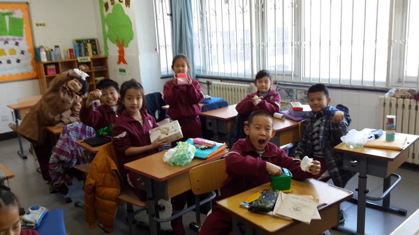 同学们今天一起观看了介绍感恩节由来的视频,在欢乐的动画片中大家丰富了知识,了解了感恩节传统的意义。大家还集体学唱了《I eat turkeys》的英文歌曲,在美妙的歌声中传递节日的欢乐。最有意义的活动应该是“保护鸡蛋活动”,同学们一早从家带来一个生鸡蛋,要负责保护这个鸡蛋一整天,并画画装饰来表达对父母的爱,晚上再完好的交给家长,通过一天保护好鸡蛋,感受到责任的重大,体会家长们保护和照顾孩子的辛苦。