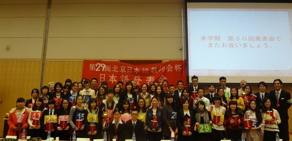 值得一提的是,由于比赛对选手的海外经历有严格的条件限制,本届比赛我校只能派出初一刚学过2个多月的日语专业学生。尽管初一学生只能用简单的句型介绍“我的休息日”和“我的家人”等日常话题,但是他们出色的发音、简明的内容、真挚的感情,给评委们留下了深刻印象。在比赛后的交流晚宴上,不少评委激动地表示,我校学生的发音漂亮,条理清晰,感情动人,甚至有评委一字不差地回忆出了我校学生的演讲片段!与会的北京各大学的日语外教也纷纷表示,没想到简单的句型也能说出这么丰富的内容,大学生们也从我校学生身上学到了很多。