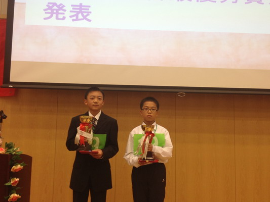 为了培养学生的演讲能力,给学生提供展示学习成果、实现自我的舞台,2013年11月23日下午,我校初中的邓永焘、李佳豪同学参加了由北京日语教师会和日本驻华大使馆文化部共同举办的“第29届日语教师会杯演讲发表赛”,日本驻华公使斋藤法雄先生出席比赛,北京各大高校和我校日语专业师生、在华日本人观看了比赛。本届比赛没有年龄限制,全场41名选手中,除我校学生,全部都是大二、大三、甚至大四的大学生。我校两名学生在巨大的压力下,用出色的表现双双摘得了“评委特别奖”,向在场的日本公使和北京各高校的日语专业学生们展现了附校学生的风采!