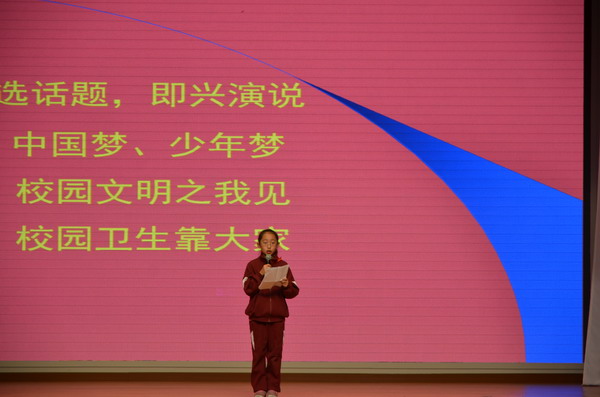 整个竞选过程安静有序,队员从主持、备场、上台、退场和播放PPT,全由队员自主完成。主席台上,大队委候选人的精彩演说不时赢得同学们赞赏,主席台下拿选票的少先队员更是精心计划着如何填写自己的选票。其中的话题即兴演讲更是锻炼了队员们的语言表达能力和思维能力,从“中国梦、少年梦”、“校园文明之我见”、“校园卫生靠大家”三个话题中选择一个即兴演说,每个话题都与校园生活息息相关,队员们也是说的相当精彩,他们有着少年梦,要为中国的国防做出贡献,他们也要做爱迪生那样伟大的科学家;他们遵守学校文明常规,主动与教师和同学问好,还提出很多建议;校园卫生方面他们也分享了自己的一些举措和小点子,这些在后期的大队委员会工作中都是很宝贵的意见。会后大队辅导员做了总结讲话,强调队员们要把工作做精、做细,不要忽略小事情,并要求在场的少先队员代表要把整个竞选过程传达给每个中队,每一名队员。