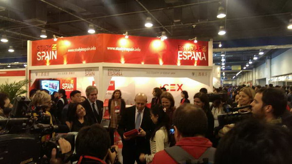 本次教育展的主宾国是西班牙,西班牙教育部长、西班牙驻华使馆教育处教育参赞及工作人员均来到展会现场,与中国教育国际交流协会副秘书长宗瓦一起对各西班牙学校展台进行了访问和交流,并为先前CCTV举办的“全国西语大赛”一等奖的选手颁奖。参展的西班牙学校主要有:萨拉曼卡大学,巴塞罗那大学,巴塞罗那自治大学,马德里IE商学院,塞万提斯学院,堂吉诃德语言学校等。