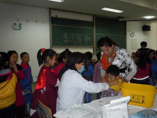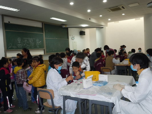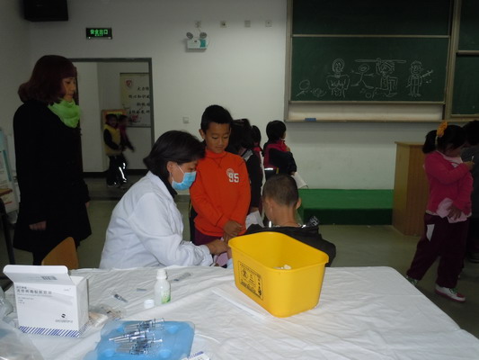 为做好我校今冬明春流感流行季节防病工作,积极落实海淀区卫生局和海淀区教育局《关于开展2013年流感疫苗预防接种工作的通知》的文件精神。按照要求,我校所有教师和学生均给予免费接种。校领导高度重视,主要领导亲自抓,统筹安排,做好前期工作,分别指定小学、初中、高中专人负责有序组织学生进行接种。为保障安全,设录课室为接种室,一阶教室为观察室,防范学生接种后身体出现异常反应,安排校医和班主任对接种后学生观察30分钟,确保无异常反应方可离开。