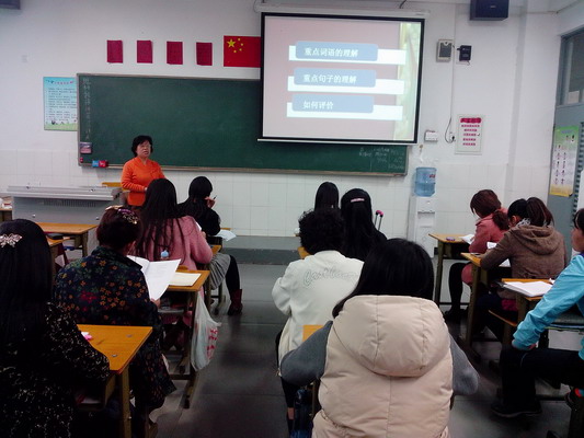 首先由易琼老师对比两届的监测题型的“变与不变”,从监测的测评目的、命题意图和测评标准以及相对应的要求进行了宏观解读,使全体语文教师对监测题型和测评形式有了整体把握。为本次的培训会勾勒出理论框架。