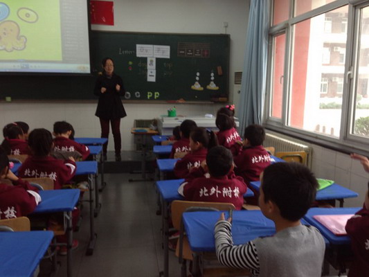 10月18日上午第二节课是一年级九班郭敏玲老师的公开课,授课内容:字母:Oo Pp的音形及在常见单词中的发音。全年级本节没课的老师都早早的前来听课了。伴随着优美的字母操,公开课开始了。首先从字母的认读到书写,大小写的区分,字母组合的发音,再将发音运用到拼读中去,每个环节层层相扣,深入浅出,孩子们大胆发言,学生和老师的教授融成一片,热情高涨。