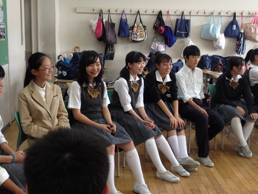 9月30日,我校学生与日本学生返校上课,体验日本校园文化。当天上午,我校学生随日本学生跟班上课,分别参加了班会、日本的计算机课、陶艺课、手工课、网球课、柔道课、英语课等课程。上完课后,我校学生参加了樱美林高中准备的交流活动。在交流活动上,两校学生代表互换了礼物。接下来,樱美林中学为我们带来了精彩的吹奏乐团表演、气势惊人的女子健美操表演等,展现了樱美林学生的青春活力与风采。我校学生用中日双语演唱了日本知名组合SMAP的《世界上唯一的花》,并回答了日本学生关于中日文化的问题,与日本学生进行了友好交流。下午,我校学生分班参加了樱美林初中举行的交流活动,与日本学生一起玩了日本的传统游戏,在游戏中与日本同学加深了交流与友谊。
