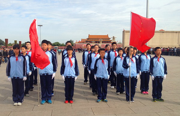 9月24日,我校24名学生在团委副书记刘志欣老师及石小军老师的带领下,顺利完成了北京市“首都少年先锋岗”活动,在天安门广场上展现了我校学生的风采。