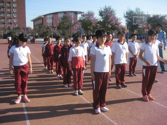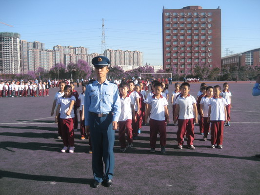 今天是2013年9月26日星期四,三年级的军训已经进行了3天。凉爽晴朗的天气为同学们的训练提供了不少便利,湛蓝的天空和孩子们的笑脸相互辉映,让同学们显得活力十足。军官们严格要求学生整理军容和端正军姿,不时亲自示范,并手把手纠正基本的动作,同学们在英姿飒爽的军官的带领下认真训练,丝毫没有半点偷懒。