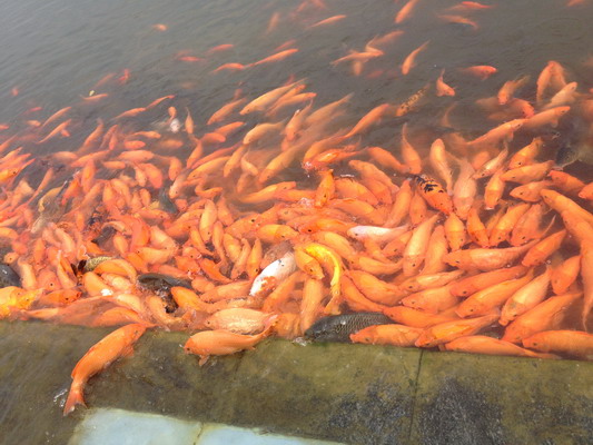 游人如织,鱼儿也游得更欢快,在水里来回穿梭,表演起水上芭蕾。于是就吸引了更多的游人前来观看。不知是谁带的头,开始往湖中投面包碎,原本平安无事的鱼群出现了骚动,之后接二连三有人效仿。看到这幅“群鱼争食图”,有的游客开始往湖里扔石子,还有的人拿起树枝在水里搅来搅去,更有甚之,有的家长竟然自带了捞子,从湖里往外捞鱼。那块“禁止钓鱼,禁止上冰”的牌子完全被冷落在一旁,成了被人遗忘的角落。