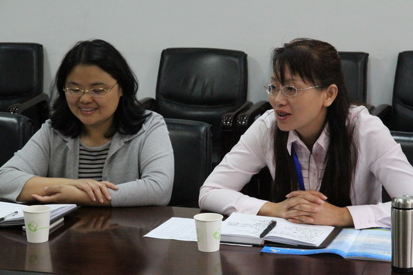 首先,我校播放了学校宣传片,通过视频使谈固小学对我校师资,办学理念,学生成绩,学生活动等方面有了直观了解,有利于接下来在我校学习调研时更具目的性和方向性。然后,参会的两校校领导、中层干部和教师进行了自我介绍,拉近了两校老师的距离,也使双方有了进一步的了解。接着,我校校长助理,小学部副主任赵玉玲介绍了小学部组织结构,师资配备,以及教研活动的时间安排等,便于谈固小学的教师们有针对性的选择听课,参与教研活动等。最后,我校教师与谈固小学的教师进行了关于教育教学活动方面的讨论,气氛积极融洽。