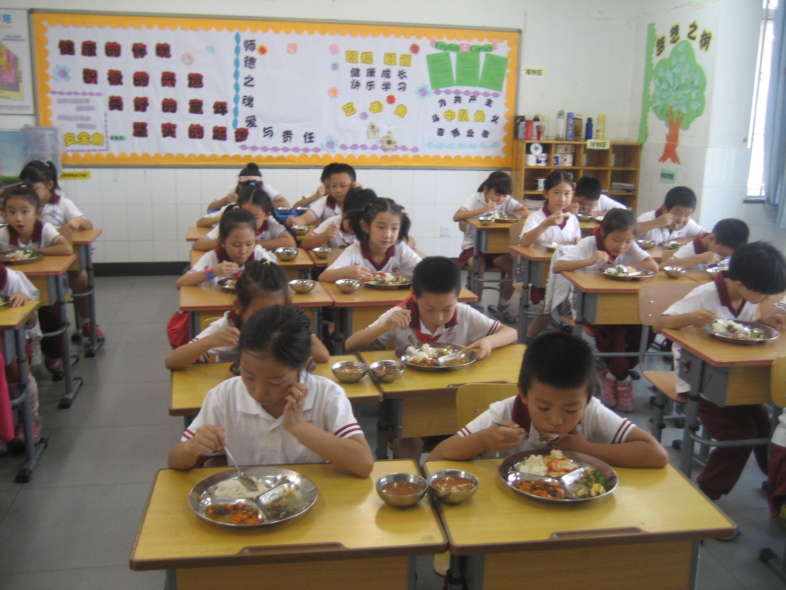 一、学生由原来的大环境(餐厅大厅)变成了现在的小环境(班级教室),更加温馨,更加适意。这就好比到饭店吃饭,在大厅吃饭总不如在雅间来得舒服。一个班的学生在一个场地内吃饭,那种家的感觉更加强烈,再加上室内空调充足,冬暖夏凉,惬意得很。