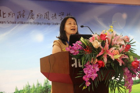 首先,由小学新一年级的年级组长郭丽丽以“教育是必要的乌托邦-合作者的共勉”为题向家长们交流了我校全人教育、精英教育的育人理念,以及在日常的教学生活中所采取的一些教育方法。郭老师还提出“身心健康才是教育的首要条件,在教育中一定要先保护学生的兴趣,这样学生的真正潜能才可能在任何时候爆发。”因郭老师在新小学一年级教育工作上经验丰富,所以在会场上,郭老师还向家长们通过具体的案例分析了小学生入学的三个阶段“兴奋期、厌倦期和适应期”并建议家长们对症下药,配合学校做好学生好习惯的培养,此外还建议家长们在开学前的暑假帮助自己的小孩做好一定的精神准备和物质准备。各位家长都仔细聆听着并认真地做了记录。其次赵主任对新小学一年级的师资队伍,课程设置进行了详细的介绍,更好的加强了家长们对我校的信任感,其中赵主任一句话:“不管是普通班还是义务班的孩子,只要来到了我们的学校,就是我们北外附校的孩子!”让所有在场的家长们都感受到了我校这个大家庭的温暖。最后朱主任向家长们介绍了有关学生们住宿,吃饭等生活方面有关细节情况,其中朱主任重点强调了关于学生在校的安全问题。