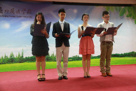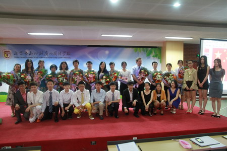 以“放飞梦想、启程远航”为主题的北京市北外附属外国语学校2013届高二VCE毕业典礼在学校二层阶梯教室举行。常务副校长王彤博士、学部相关中层领导干部、高二VCE班全体教师等均出席了典礼。