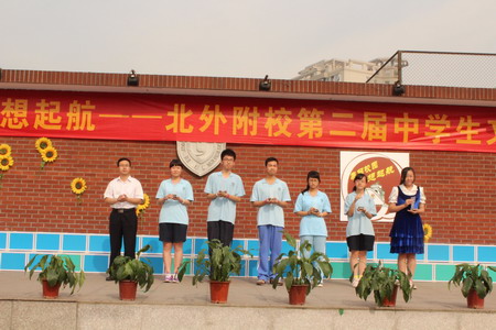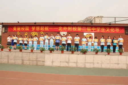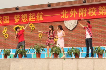 “梦想起航”的演出更加丰富多彩。有“中国梦”的理想演讲,有文化交融与碰撞的短剧,有坚信理想实现的信心和在理想实现道路上相亲相爱的歌曲演唱,还有气势磅礴的诗歌朗诵。最后,四个非毕业班整体的古诗词诵读和合唱团的合唱将演出的气氛推向高潮,故乡是北京,这里是北外附校,我们梦想起航奔向远方的地方。歌声里,演出华丽落幕。