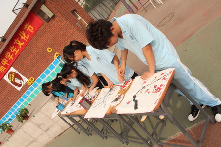 在“美丽校园”的演出中,通过场面恢弘的葫芦丝合奏,激情四射的街舞表演,遒劲有力的书画创作,外教礼仪育人的校园文化风采展示等将校园的艺术美、活力美、文化美、风采美淋漓尽致的表现出来。