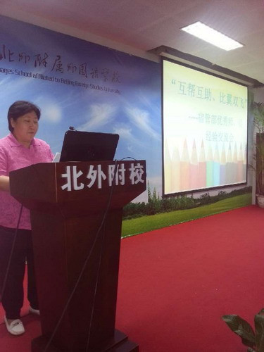 会上年轻的徒弟意气风发,浑身洋溢着青春的气息,刘一平老师从师傅衣筱漪老师每天点滴工作中学到做事就要认真、做事就要做细;冯婧老师从师傅刘洪卿老师每天晚上送孩子的一个拥抱学到对孩子们的关爱。做为师傅的老教师透着稳重、带着慈爱,虽然年轻,但已经是师傅的周丹老师和衣筱漪老师,工作经验丰富,在带徒弟方面也非常细心;濮存晶老师和孔祥平老师都是优秀教师,她们从工作、生活方面手把手的教徒弟,言传身教使徒弟在短时间内有了明显进步。台上老师的发言各具特色,台下老师不断爆发出热烈的掌声。老师们在这样的优秀师徒交流会上获益匪浅,学到了意想不到的独家秘方,分享着优秀老师的管理经验。略带紧张,又按奈不住激动的小徒弟们争先恐后的上台发言,他们把学到的、看到的、感受到的方方面面,通过今天特殊的方式面露真挚的表达出来,而师傅们则毫不保留、不厌其烦的讲述着多年来积累的经验,整个会场处处充满着和谐,张张脸上都荡漾着笑容,交流会就在这样互相学习、互相帮助的气氛中结束了。