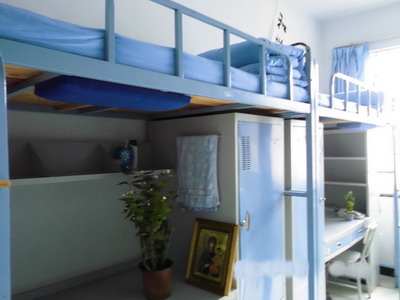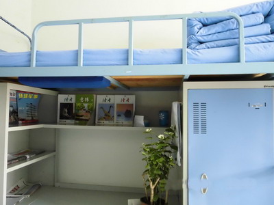 虽是学生宿舍,但一张张平整的被子整齐划一,一点儿也不逊于军人所叠的“豆腐块儿”。在每位同学的桌子上,还放着一盆盆绿色植物。在闲暇时,可以专注于这些绿色所带来的美。