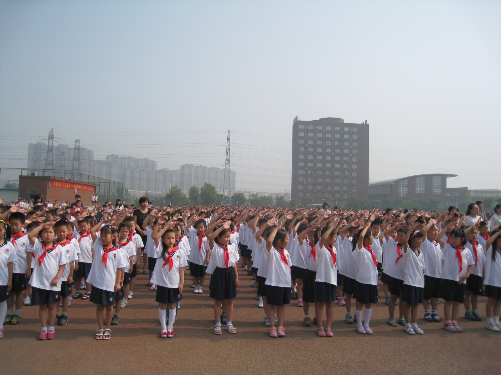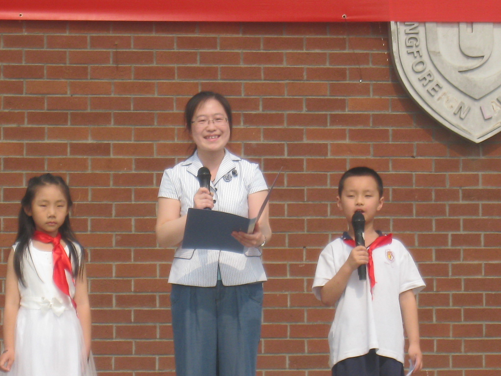 五星红旗,嘹亮的国歌声回荡在北外附校的每一个角落。