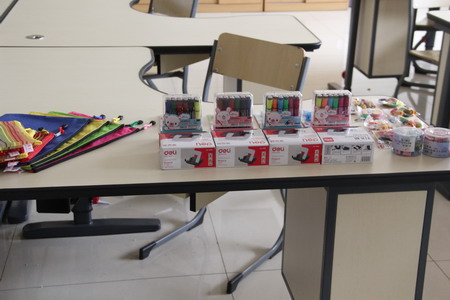 在每个教室内的活动都进行的井井有条,每个同学排着长长的队,一次进场参与游戏,答题,得到奖票。然后去最后一间教室去领取属于自己的礼品,一开始领奖处并无太多人,快结束的时候,很多小朋友都来这里领取礼物,选取自己喜欢的礼物,每个人都很认真,都很开心的挑选领奖。