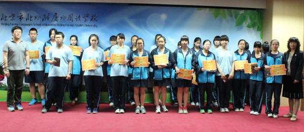 然后,大会对表现出色的同学给予表彰。关于学习方面的表彰项目有:期中考试优胜、期中各学科优胜、“春蕾杯”获奖选手;关于学校方面的表彰是年级之星;以及关于生活区方面的优秀住宿生表彰。大会还公布了高一年级的四月份年级之星。高一(7)班王瑞辉同学积极参加学校体育活动,为学校争得荣誉,年级对王瑞辉同学颁发了特出贡献奖。王主任、朱主任、刘主任等学部领导为获奖同学颁奖。