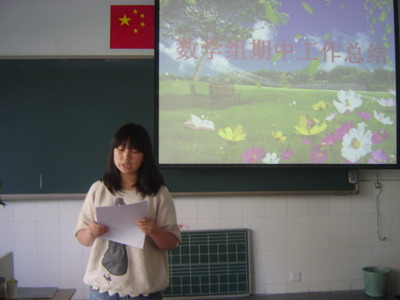 随后三个备课组长进行了期中工作总结汇报。语文组备课组长王慧老师总结了开学以来组内老师进行的教研活动,老师们充分发挥合作精神,紧抓语文教学基本点,培养学生识字写字能力,并在此基础上注重培养学生的说话写话能力以及阅读兴趣。数学备课组长程静云老师从常规工作、教研活动、学生活动、综合练习分析这四个方面对本阶段工作进行了总结和分析,指出数学组本学期在学校领导的关怀下,在大备课组的正确引导下,年级组长的参与中,全组教师团结协作,专业发展,快乐教学,注重实效。英语组备课组长曲阳老师汇报一年级英语组从开学至今坚持以研究英语教学的有效性为目标,以提高教师的业务水平为目的进行的教学教研活动,认真落实减负增效这一方针,积极开展周三英语日活动,进行特色展示和口语练习。力求将英语还原生活。4月22是世界地球日,在4月英语组抓住教育契机,教授孩子们“Tell me why”这首歌曲,结合实际,教育学生热爱地球,保护环境,反对战争,热爱和平。