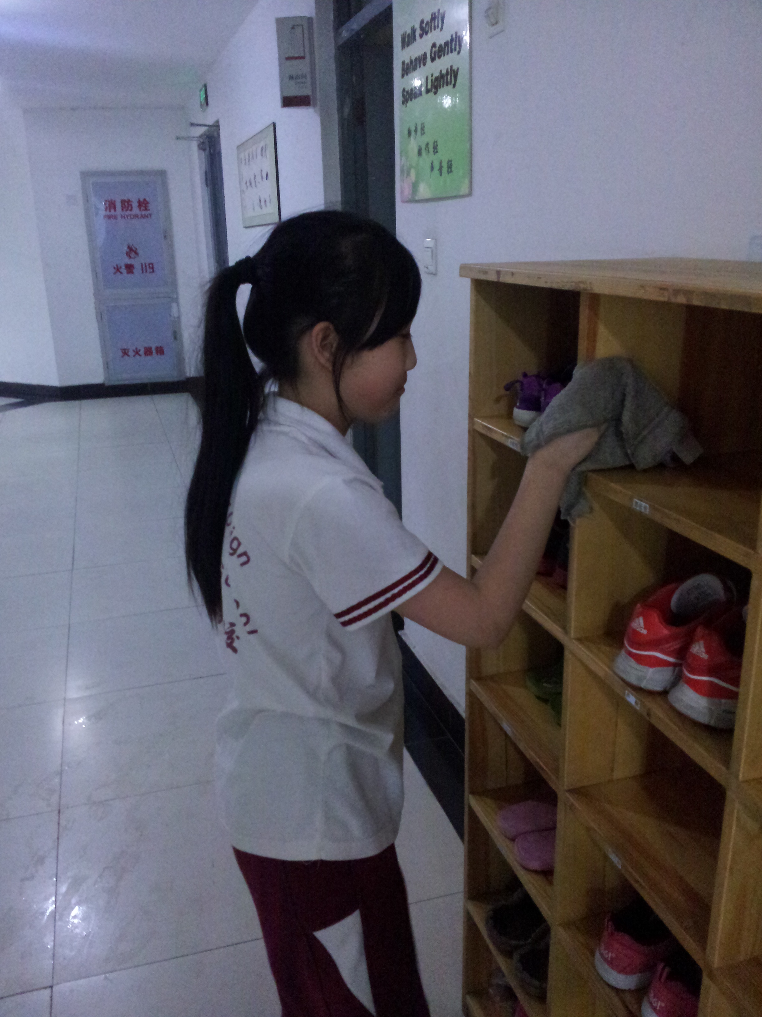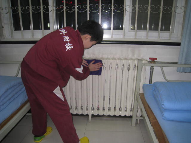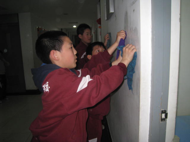 活动开始前,老师对活动内容进行了统一的布置:一组擦窗台,二组擦床,三组擦墙面,四组擦水杯架,五组擦鞋架。根据老师的安排,同学们热火朝天地开始了工作。各组内自行分工:个子高的擦上面,个子小的擦下面,有负责洗抹布的、有负责擦的、还有的同学去找卫生死角,同学们互相合作、愉快劳动着。老师们也一起参加了本次活动,一边指导一边和同学们一起劳动。孩子们把这里当成了自己的家,在为自己的“小窝”而辛勤的劳动,因为这里是充满欢声笑语的地方。在他们勤劳的双手下,宿舍里变得更加干净和整洁。