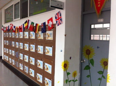 于是我们独一无二的作品诞生了!同样的向日葵背景,却有着各自独特的灵气,与门上的向日葵、走廊里的绿植、响亮的班训交相辉映,这就是二班的班级文化。
