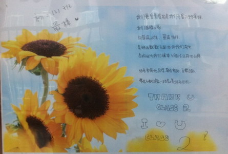 我相信,我们大家也相信,初二(2)班永远比阳光更绚烂。而造就向日葵炽热色彩的,是我们的年少、热情和明媚。