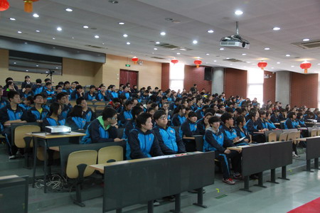 随后,二位教授来到二层阶梯教室和一层阶梯教室进行分班授课。Roy Tasker教授针对高一年级学生以“我们为什么要学习科学”以及 “澳大利亚是如何教授科学”为课题进行讲授,并自带100个ipad与现场学生进行互动。Roy Tasker教授幽默风趣的教学语言、收放自如的课堂驾驭能力和清晰条理的教学思路,让现场学生很快进入教学情境并积极热情地与教授进行交流。