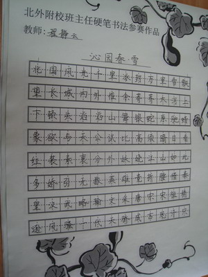 王老师宣读了基本功大赛的几个环节。第一步,学习发动,提高认识;第二步,进行三笔字(画)比赛;第三步,设计班会课,并进行展示;第四步,学习相关政策法规;第五步,观察班级环境布置,班级活动、广播操等。通过几项活动,促班主任专业化发展。