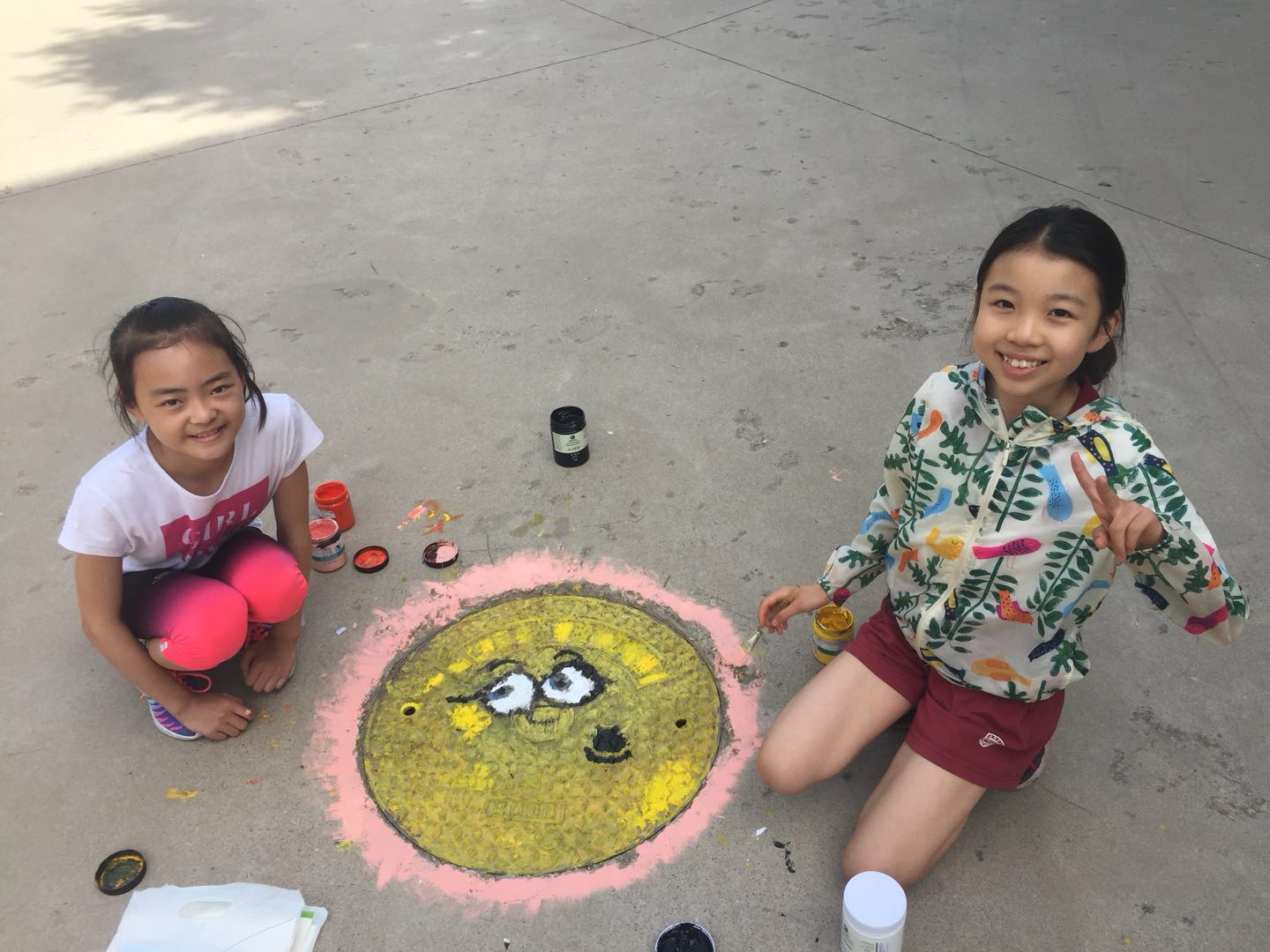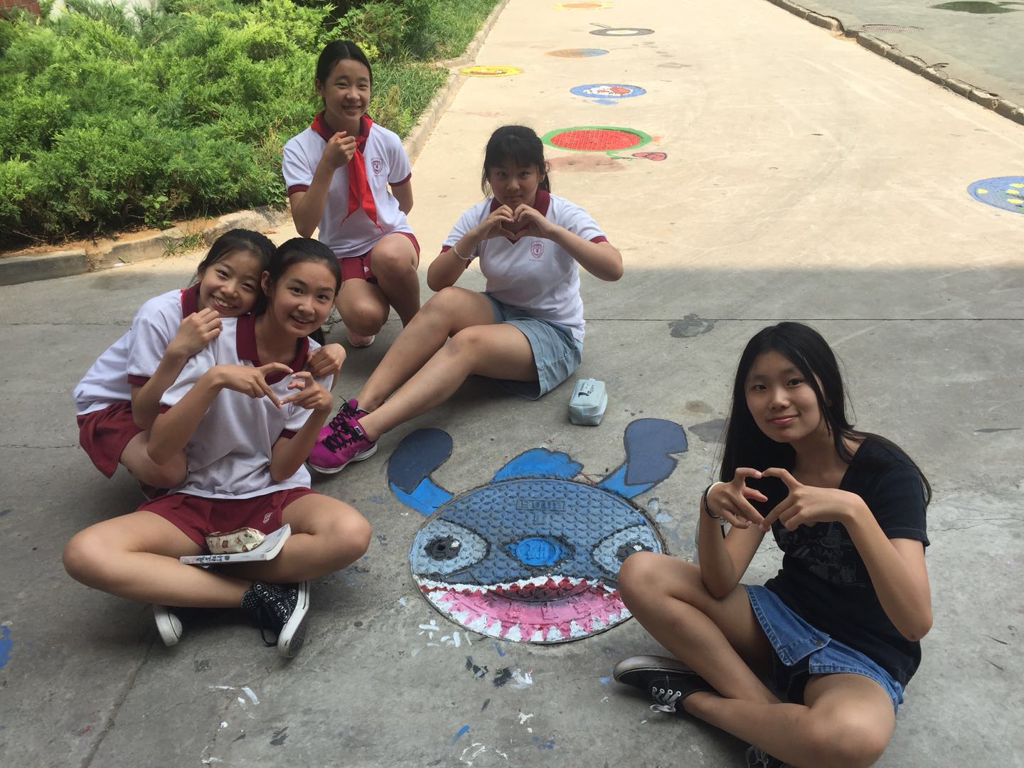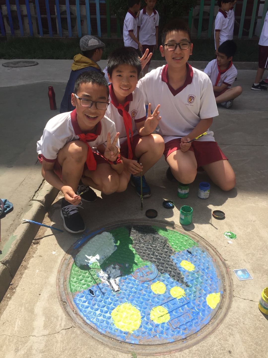 六年级毕业班的学生利用美术课时间,为校内20多个窨井盖披上“盛装”,各类卡通形象令人眼前一亮,有我们耳熟能详的动漫人物,如“蜘蛛侠”、“海绵宝宝”;还有名人名画,如梵高的“星月夜”;还有一些3D立体画栩栩如生。在不长的校园小路上,一个个窨井盖加以特别的点缀,别有一番趣味,这也是六年级的毕业班学生为母校送上的特殊毕业“礼物”!