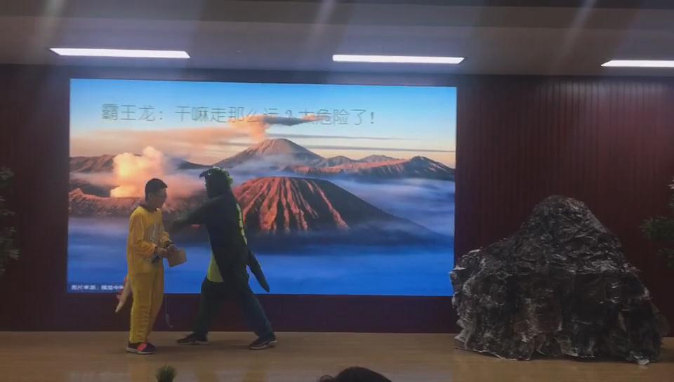 5月份开始,两位老师根据各自学科的特点开展了专题课堂,精选了语言生动、极富感染力的日本经典心理绘本《你看起来好像很好吃》作为剧本素材。绘本以凶悍的霸王龙与娇小的甲龙宝宝的温馨“父子情”为主线,跌宕起伏的故事情节引导读者体验爱与被爱的快乐,以及人与人之间交往的真谛——信任、关心和鼓励。日语老师深入挖掘剧本中的语言点,在日语课堂上讲解了日语绘本中生动有趣的拟声拟态词,并利用剧本让学生进一步熟悉了日语的平假名和片假名,指导学生流利地诵读剧本。心理老师开展了“信任是一座桥”、“情绪表达之非语言沟通”主题心理课,通过绘本阅读及“信任背摔”活动带领学生体验信任对人际互动的影响、信任与被信任的感受。通过学习表情、语音语调及肢体语言等非语言表达方式深入理解剧中人物的内心世界。