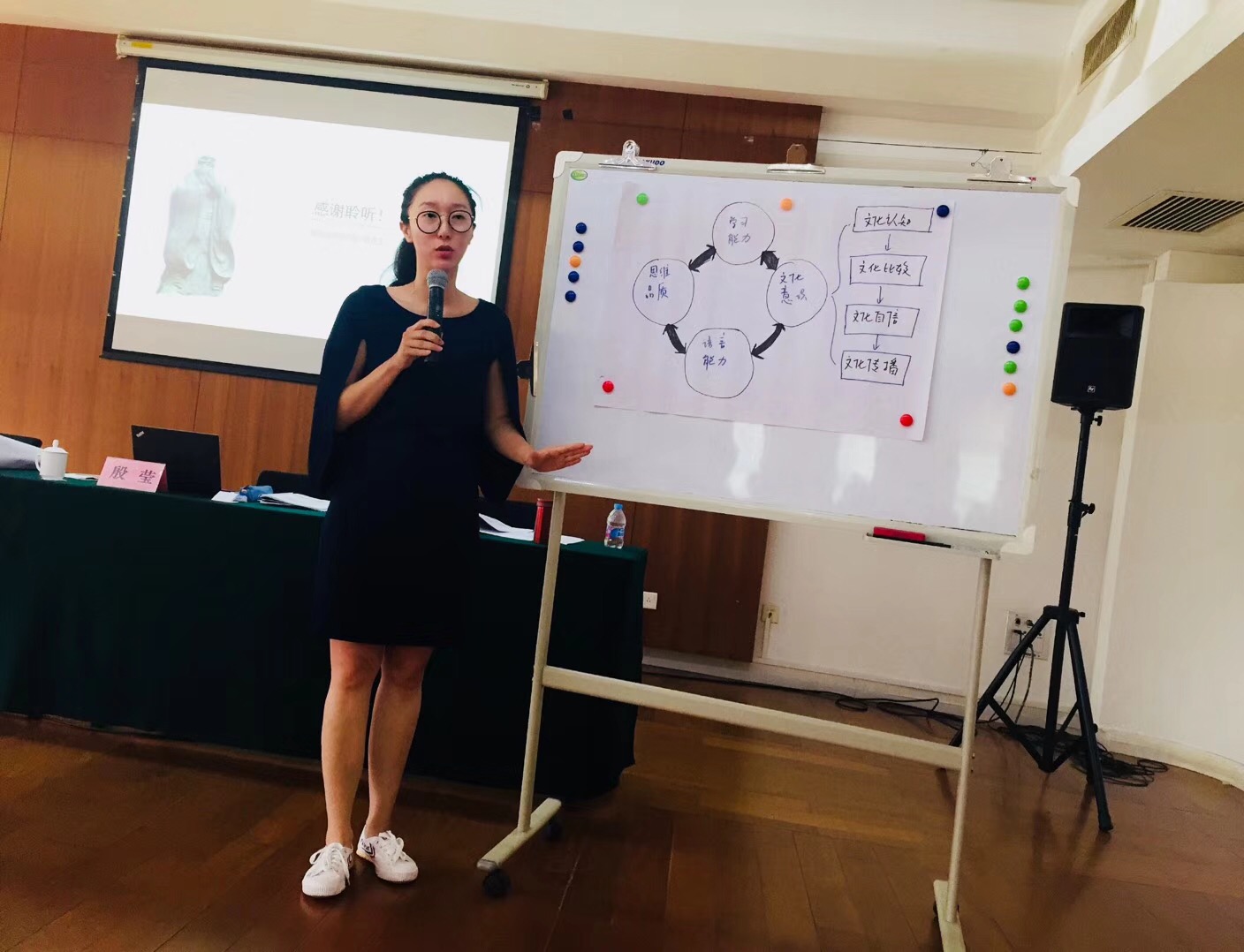 自25日下午始,各个语种开设分会场,我校老师们进入分会场进行学习。本次培训原则上是针对各省教研员开设,各语种课标编写组成员对新课标做整体解读,并分别针对核心素养背景下,各语种课程结构和课程内容、教材的选用、教学案例分析和设计、学业质量标准和基于核心素养的课堂评价等内容以工作坊的方式进行了研讨。