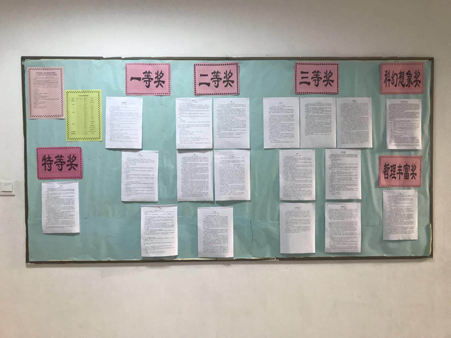在初二四位语文老师的指导下,全体初二年级学生参加了此次小说创作大赛,提交两百多篇作品。经过认真审阅和遴选,入围作品33篇。最终评选出特等奖一名、一等奖三名、二等奖五名,三等奖七名,科幻想象奖和哲理丰富奖各一名。
