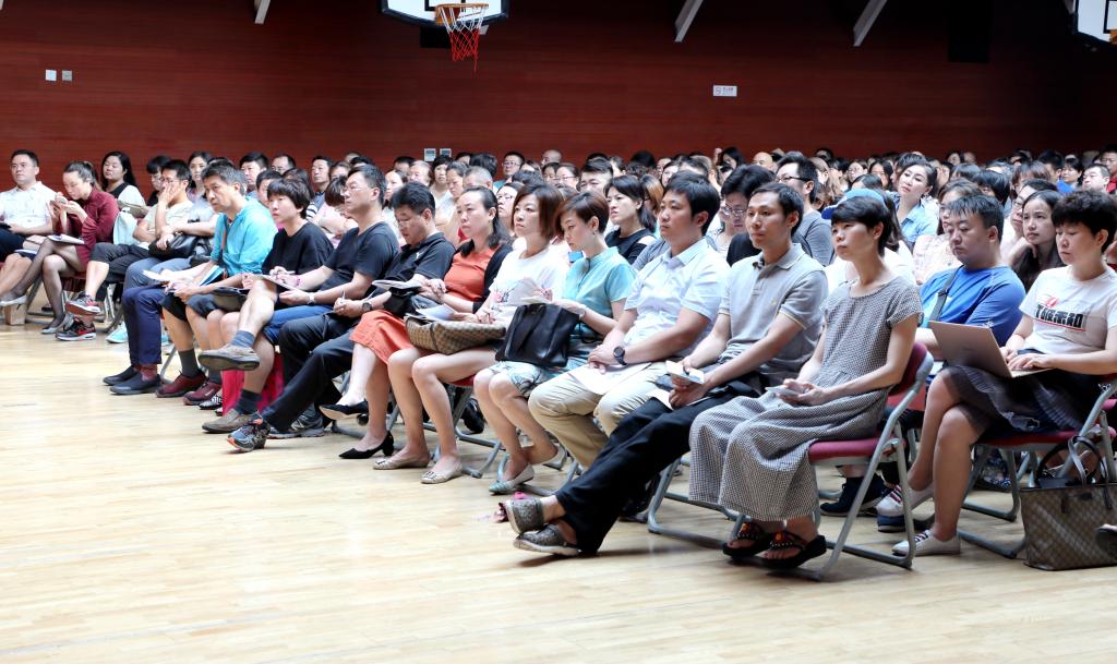 本次家长会共分为两个部分:集中家长会和分班型家长会。在第一部分——集体家长会中,张继军对2018级新生家长的到来表示热烈的欢迎,并向家长介绍了2018级新初一年级的基本情况和教学、德育等重要举措。她希望家长们能够意识到学校教育与家庭教育协作对孩子的重要性,做到家校合一,使家庭教育和学校教学形成合力,促使孩子健康成长、成才。李保申老师对于“小升初衔接”、分层走班教学以及学生暑假作业等方面进行具体的解读和指导。许祥向家长们介绍了学生在校一日常规、学校德育管理体系和培养措施、学生开学报道等事宜。