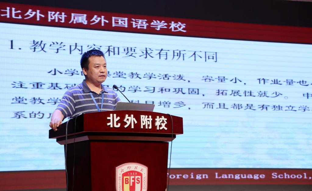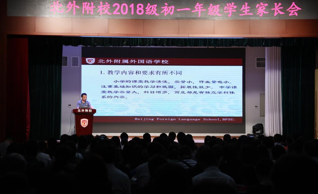 为了帮助孩子做好小初衔接,能够快速融入初中的学习生活,7月8日上午,2018级新初一年级家长会在国瑞厅隆重举行。北外附校党总支书记初中校长张继军、初中副校长杨磊、许祥、初一年级部主任李保申及新生家长等350余人参会,会议由潘铎轩老师主持。